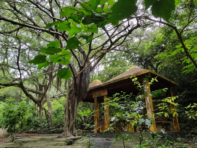 費了一番功夫,我們從南山走到了北山,在「盤榕」這處亭子稍作歇息。