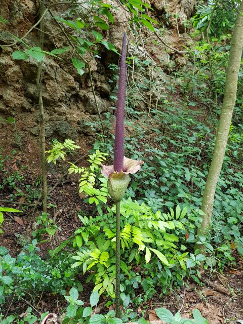 偶爾還會看到高高尖尖的開花魔芋,很難想像這東西其實是蒟蒻啊。