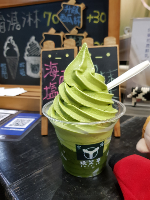 接過霜淇淋,立刻挖了一口,有用宇治抹茶粉的真的很不錯啊,