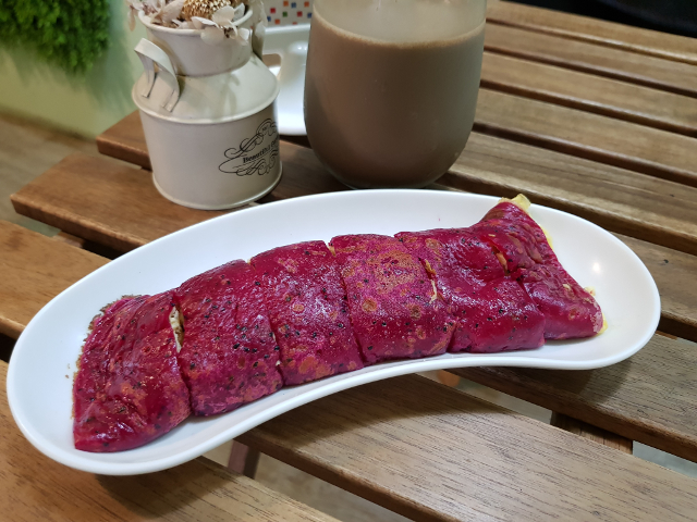 覺得蛋餅做得太大份,害我吃到一半開始撐,