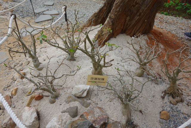 沙漠玫瑰如果有開花其實很艷麗,可惜現在時節不對,連綠綠的龍舌蘭都比他搶鏡。