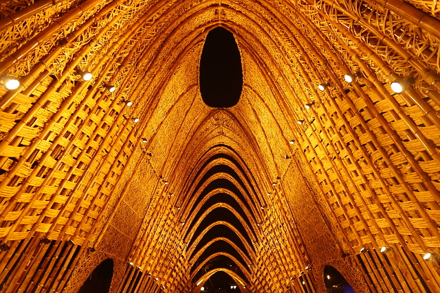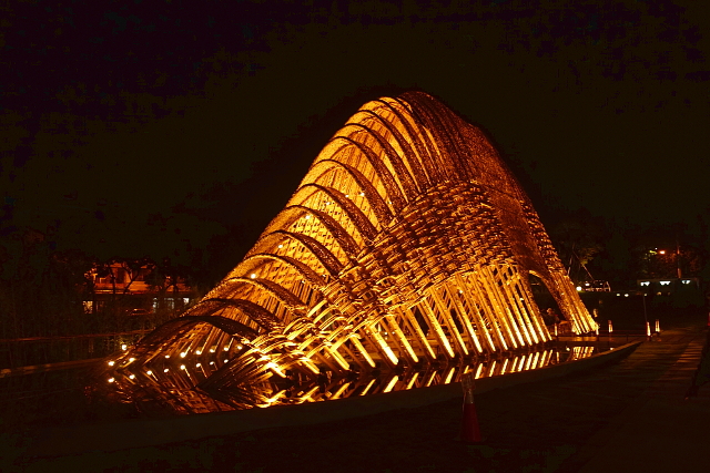 它以中央山脈為意象,在白晝可以感覺竹子編織而成的樸實質感,