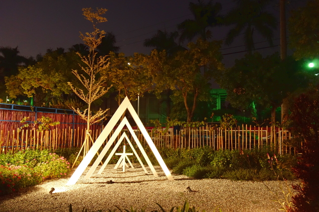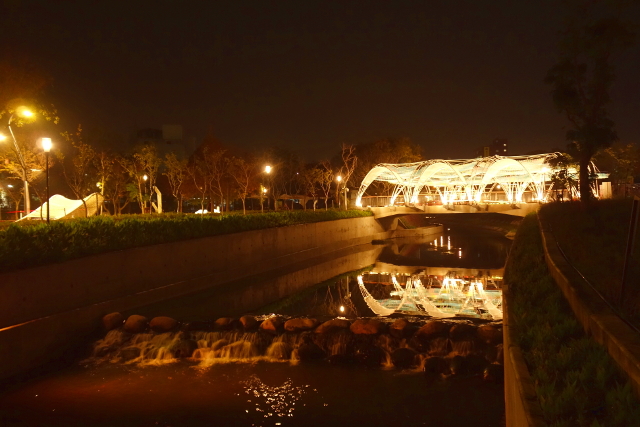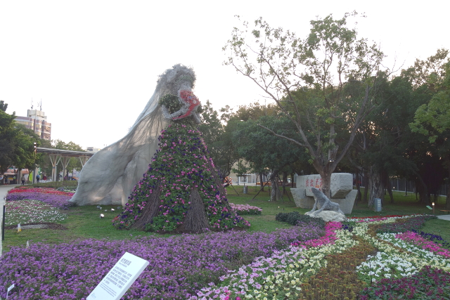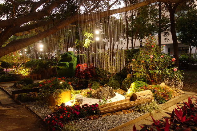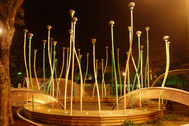 似乎白晝時有開放小朋友爬進花心玩沙,不過晚上週邊都圍起來了,沒辦法一探究竟。