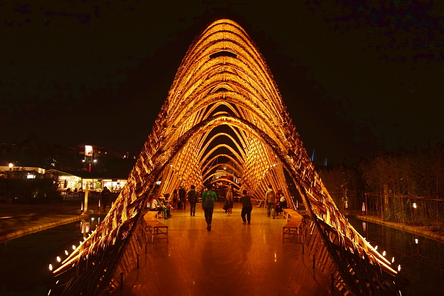 行走其上,能俯瞰映著微光的河道。