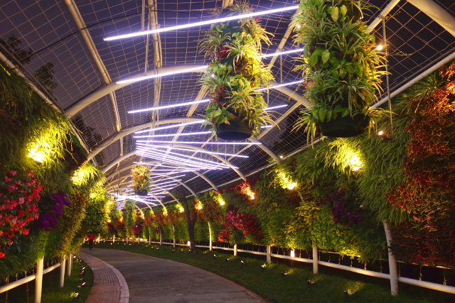 這一段的棚架終於有掛植物了,晚上都沒人很好拍,