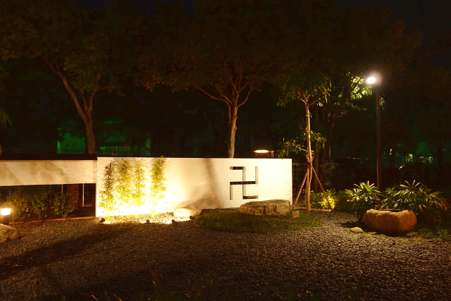 而在最末端,門口環牆用細密拼組的燈孔排列成各樣動植物,