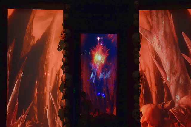 下個場景是「懸空棋盤」,背景螢幕烈焰衝天氣勢十足,