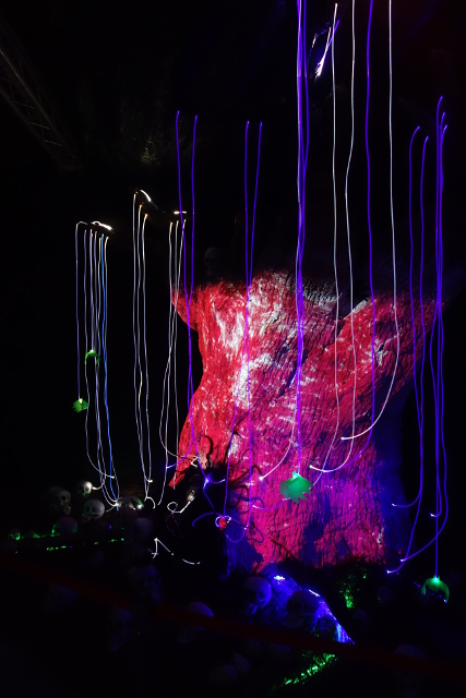 先遇到的是「等活地顎」,紫黑色調的地獄裡有棵血紅「等活老樹」。