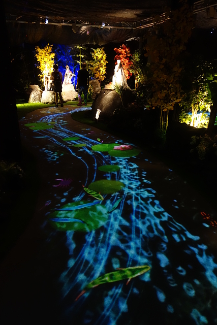 裡頭同樣也用投影作出流動繽紛的空間,步道成了涓溪,