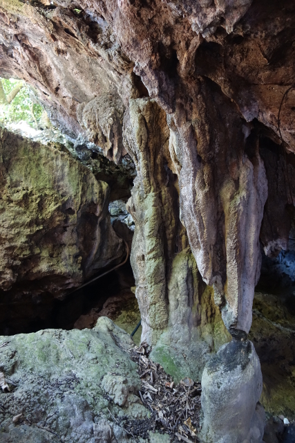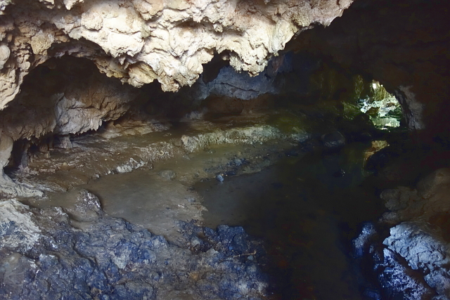地下水把岩窟穿鑿成河道,不曉得順著划去會不會柳暗花明,又是個秘境。