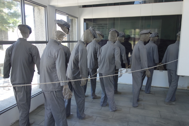 另一棟比較大的中正堂同樣也被改建為展廳,有走屍般的人偶前行羅列。