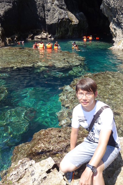 另一半已經游進去從裡面賞看水色的變化。