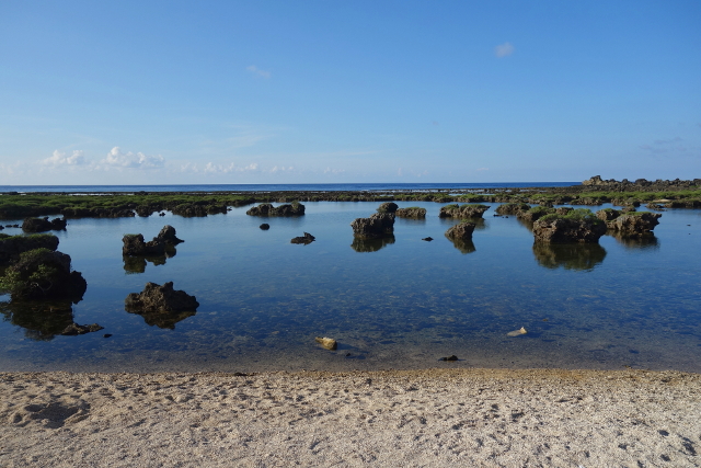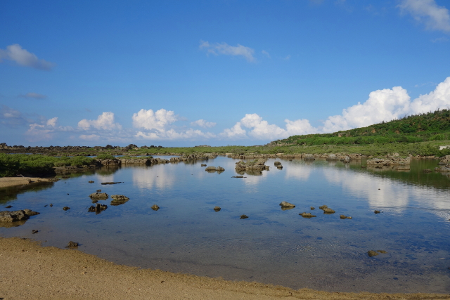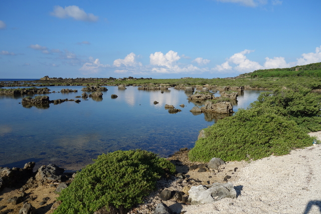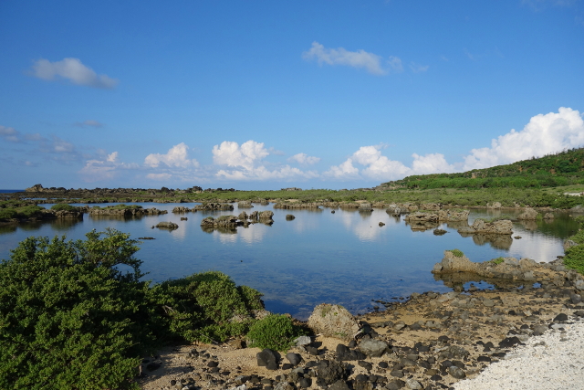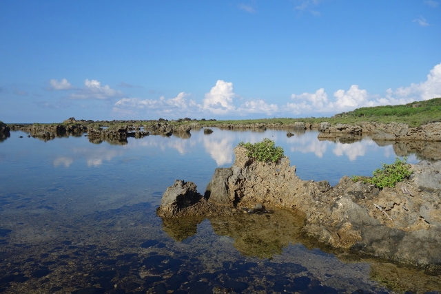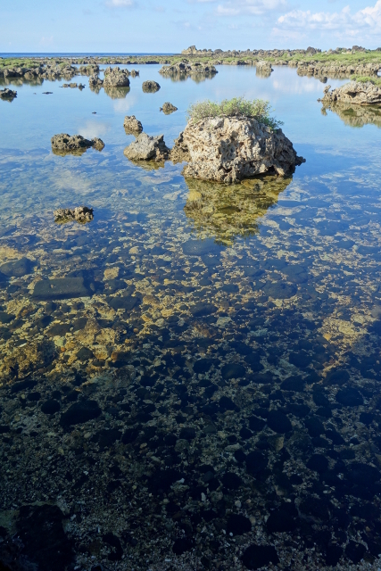 不過比較吸睛的反倒是眼前這池水,應該是被礁岩圈繞住,隔絕了海浪的拍打推襲,