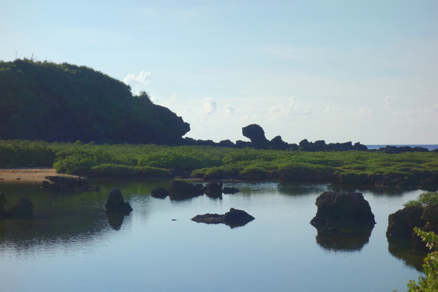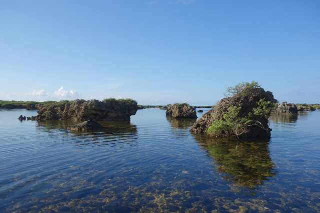 而其間被植物盤踞的小礁岩成了一個個小島,蓬萊瀛洲般,