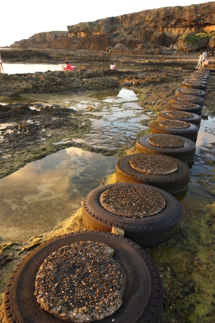 除了造型泉區,步道還往海延伸,在末端圈出幾個小圓池。
