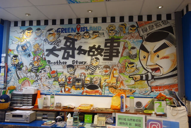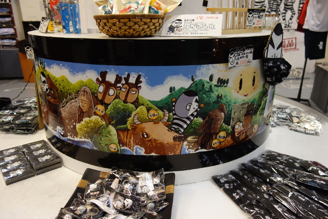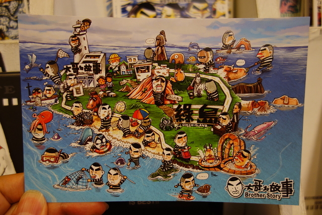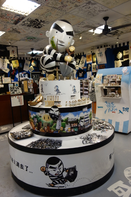 販賣的品項都圍繞著這位大哥,胸章、鑰匙圈、明信片、拼圖,應有盡有。