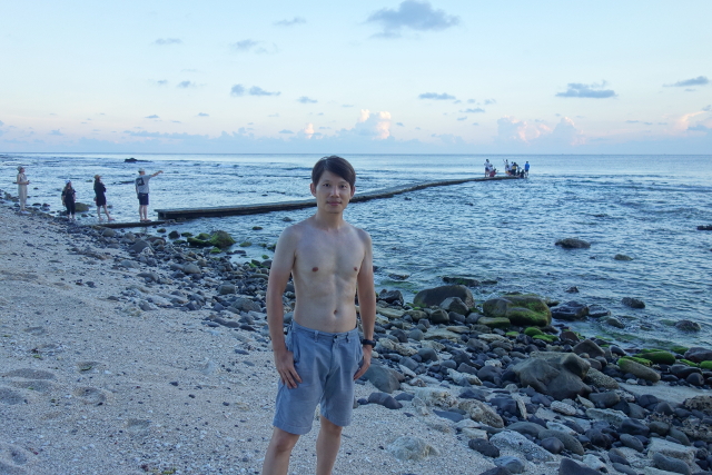 在步道晃蕩了一陣,我們回到海岸坐著放空,