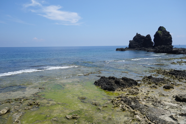 海岸線上有不少奇特的礁岩,像照片右邊這個被稱作「將軍岩」,