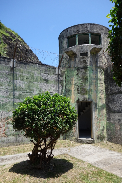 走進山莊,園區裡還留有當時的看守碉堡,現在看來依舊陰森。
