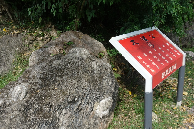 鄰近之處還有這個大福公,說石頭的紋路很像長滿鬍鬚,所以幫他雕了手臉,挺逗趣。