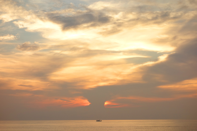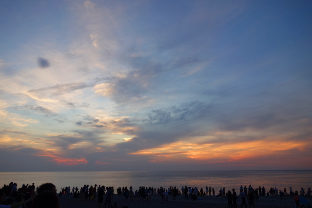 於是就在此起彼落的亂噴中,海平面慢慢變得微紅,
