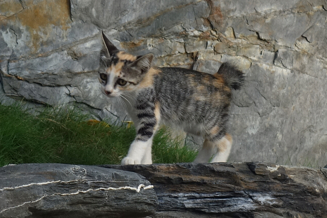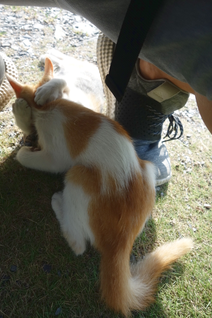離開民宿前,遇見兩隻小貓在院子玩耍,頭大大身體小小好可愛,