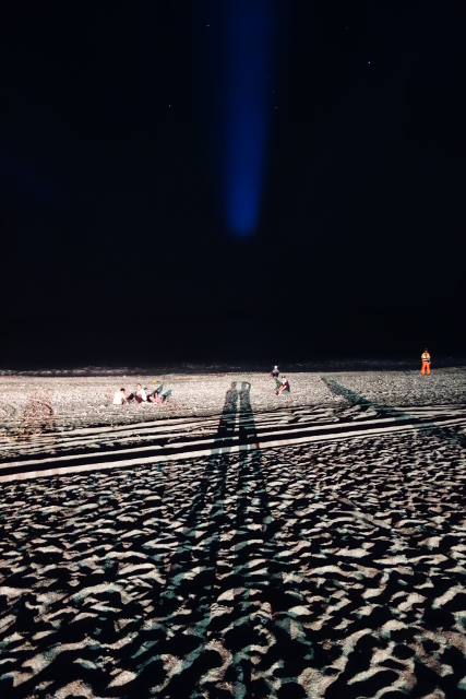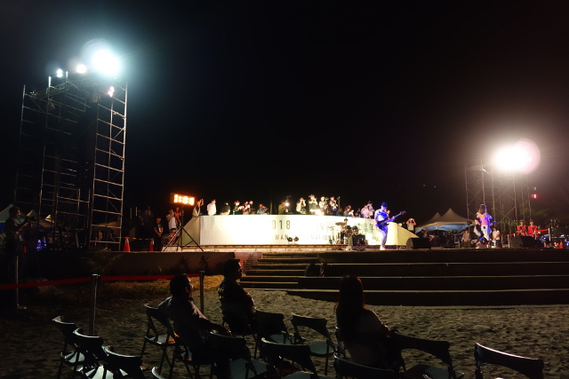 對這曲風沒興趣的我們,只好往海灘走,尋找看熱氣球視角比較好的位置。