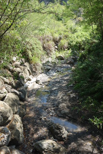 從木棧道走進去,一旁的小溪快乾透了,果然是惡地。