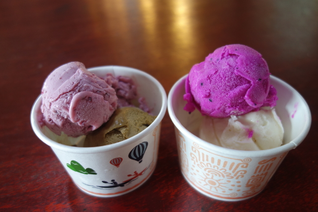 熟門熟路找到「美濃冰品」,很幸運地今天有紅烏龍口味,第一球就決定是它了,