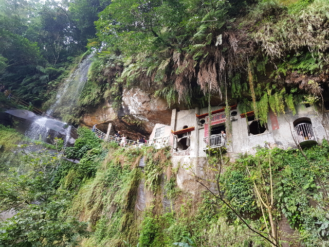 這個鑿穿在山壁,傍著水瀑的小廟還是挺有自我風味,