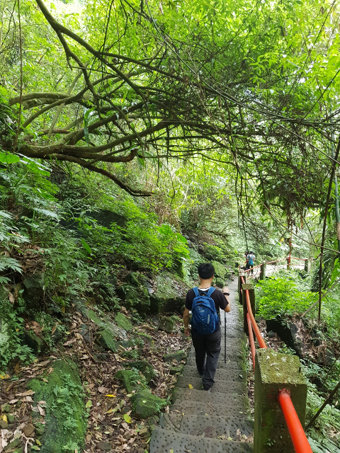 除了來時從貓空繞過來的山路,還有另條長階往下通往新店那側,