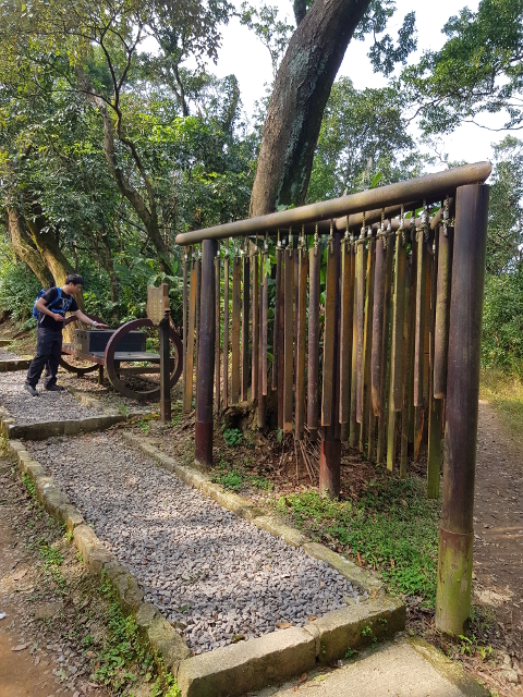 對著指標與路線,走了一陣,我們遇見幾個木頭造景,