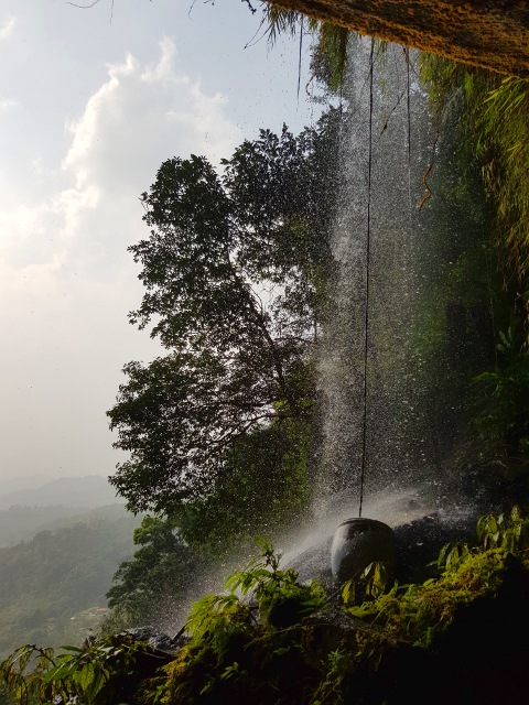 小廟的另一側,有小徑從瀑布後鑿穿而過。
