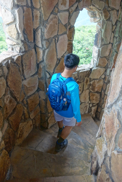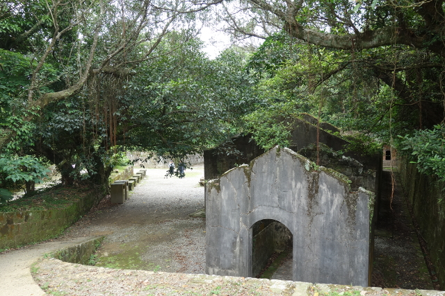 從階梯攀上去,露天部份是砲台遺跡,可惜一門砲都不剩了,