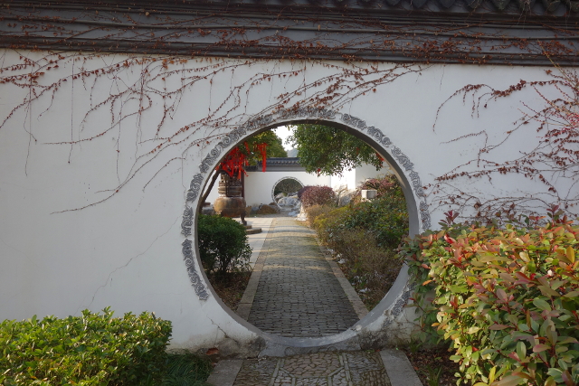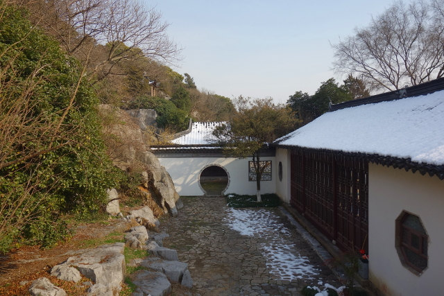看過了太湖水,步徑往旁穿入洞門,林蔭掩著素牆,