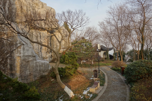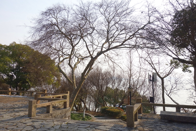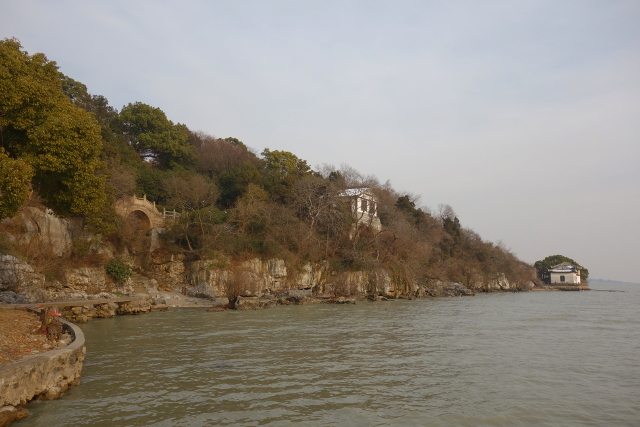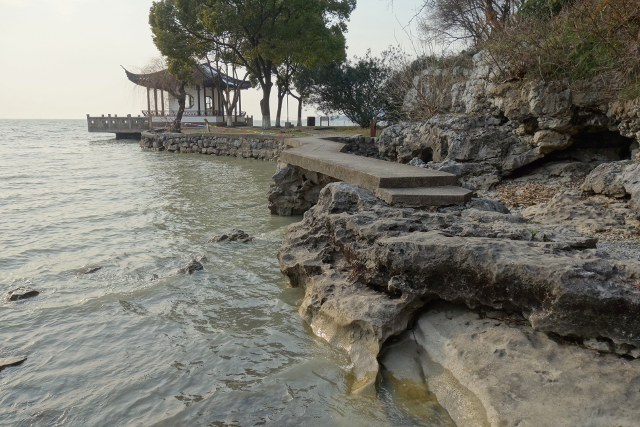 石公山的景點都集中在面向太湖的那側,繞過了明月坡,另一邊就是林子與人工池,