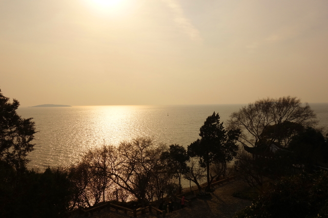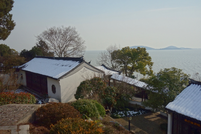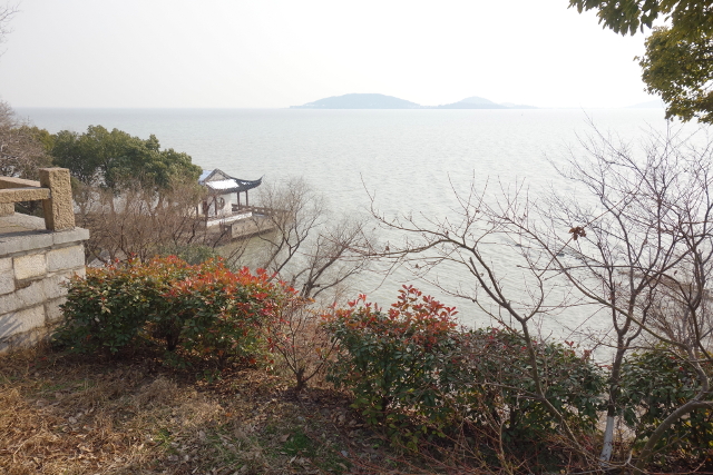 而當行過「橘香亭」,走到視野開闊處,便可一覽太湖粼粼波光了,