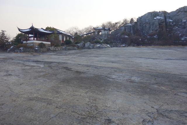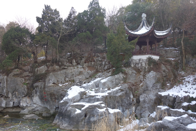 可疑地點的附近是築了小亭的禿石坡,儘管望來滄桑,微微的積雪卻讓它很有味道。