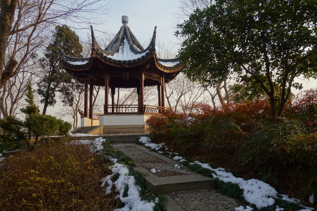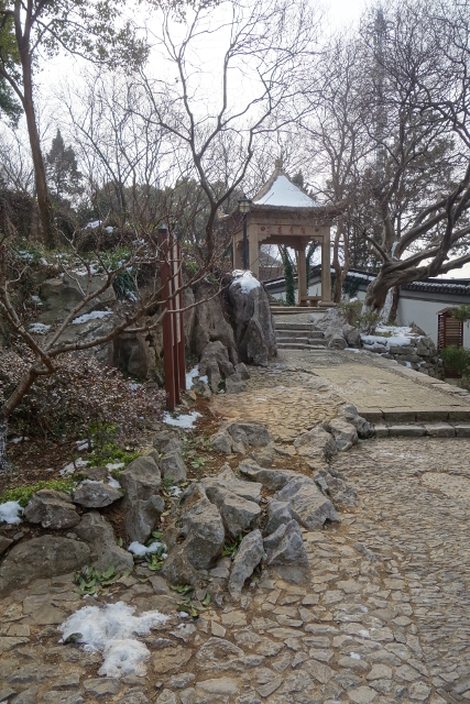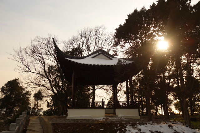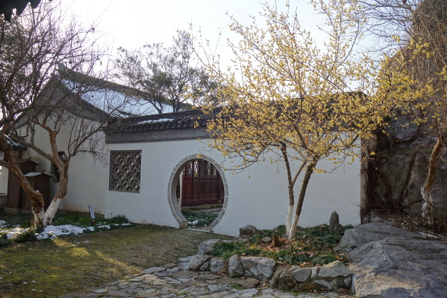 先遇見的是這個「斷山亭」,一旁伴倚的臘梅又讓我花了好些時間去拍它。