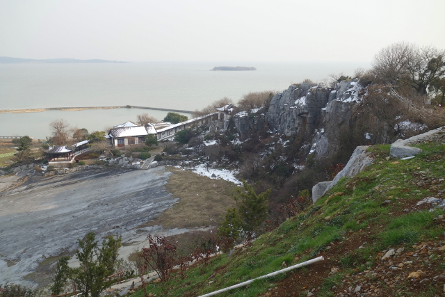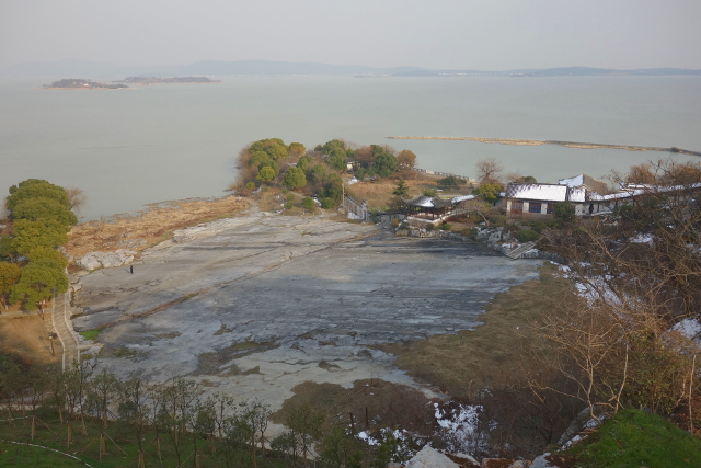由「聯雲亭」週邊往下望,近湖處寸草不生,灰禿禿一大片,