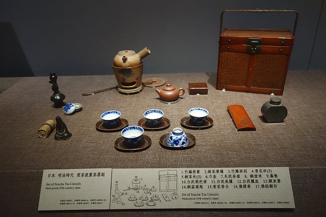 於是快馬加鞭往前看著,這裡的展品包括日本那邊的茶具,同時附有字牌說明,