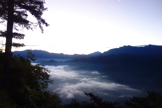 路上的開闊處能看到些許的雲海,但跟日出那時的已經完全不能比。