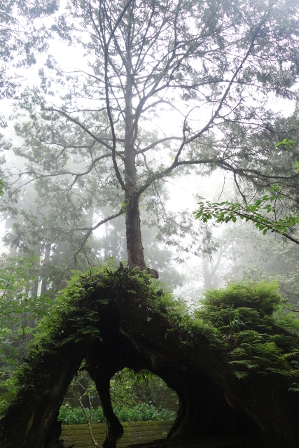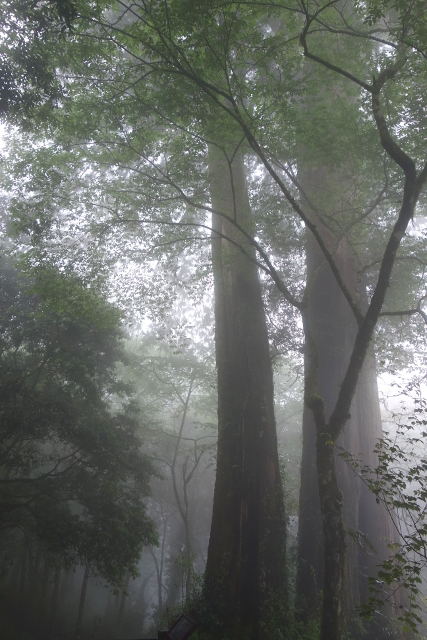 繼續沿行道往裡走,隨處一望都是宛如仙山的景緻,每株在霧靄中探首的樹冠都像神木。
