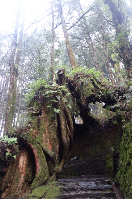 殘餘部分仍舊現顯了它原本的龐然,而階道就這樣從樹根底下穿過去,