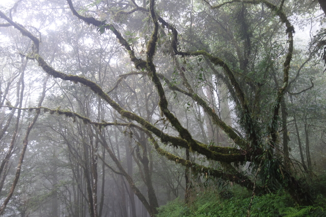 這棵在深霧重鎖的幽暗林子裡,有種陰森的感覺,像隨時會變成蛇蔓,揮動、將人綑綁吞食~~