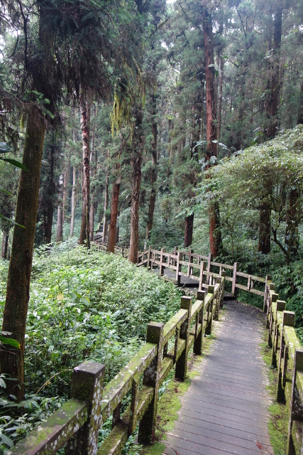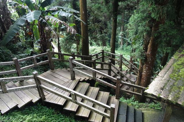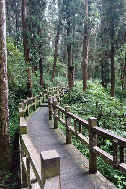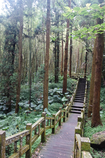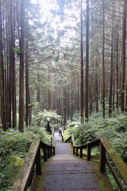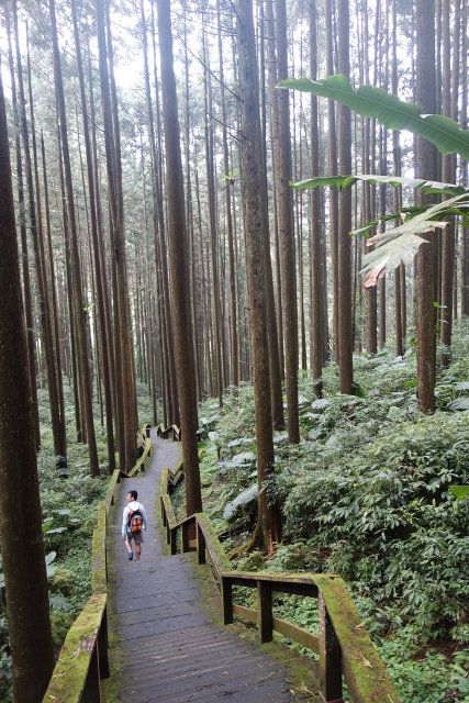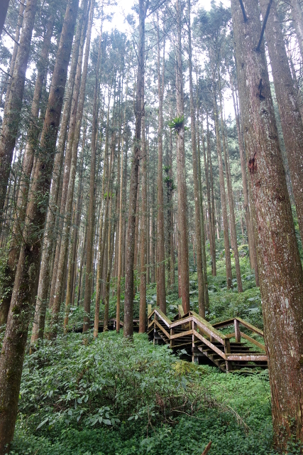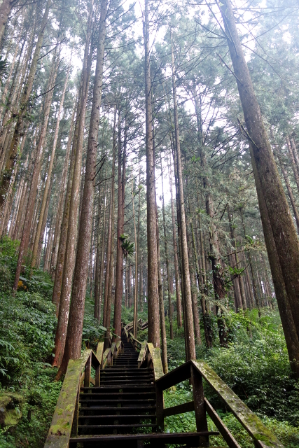 南步道主打的是杉木林,一路都能見到極為筆直的杉木以參天之姿,偉立在階梯兩側。