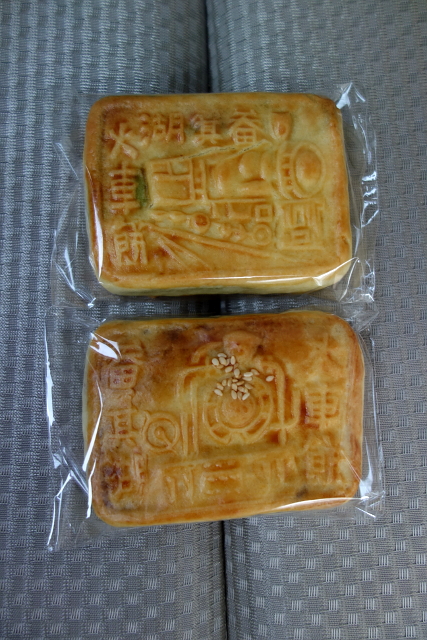 看櫃上幾乎被掃空似乎有點可信度,所以就繞去跟它買了綠茶跟魯肉內餡的火車餅,