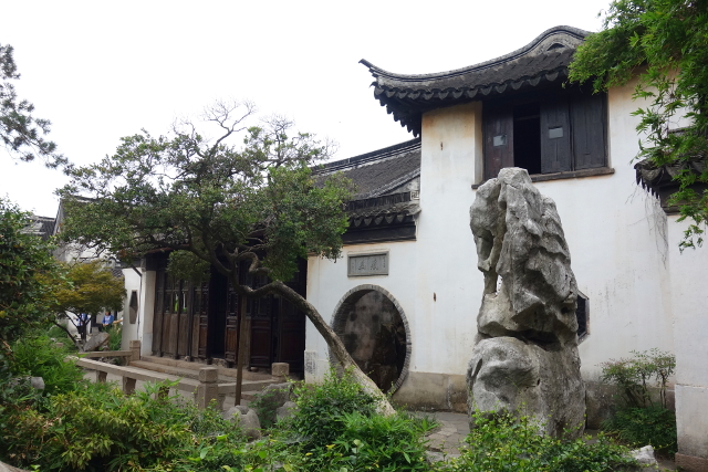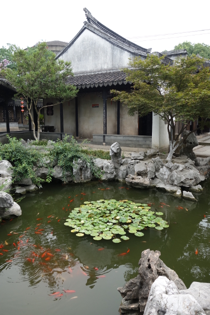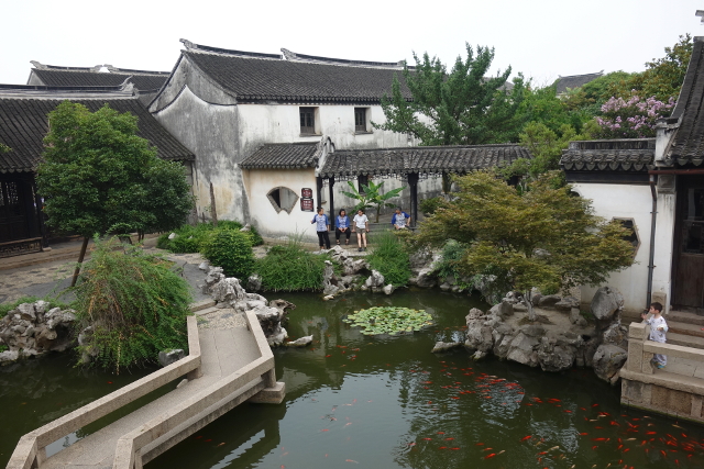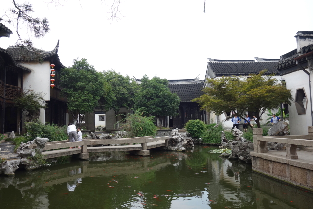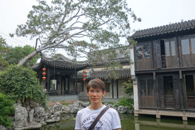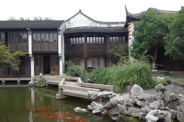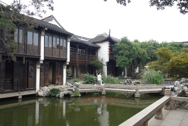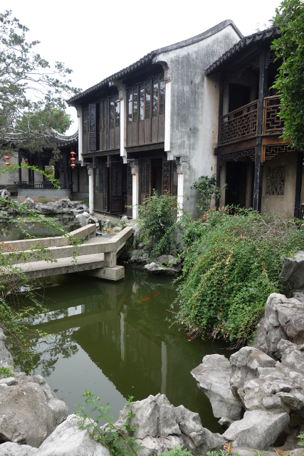 滿喜歡池對岸的深褐老屋,之前走過的園林很多屋子都因為重修,漆色過於新燦,