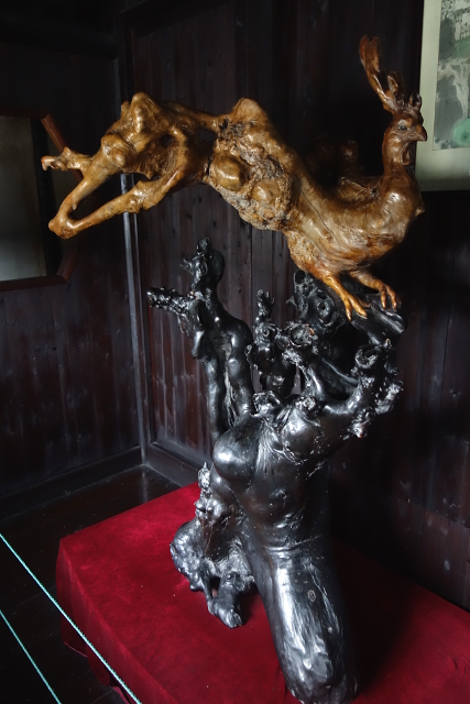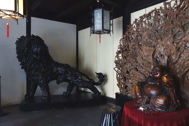 裡頭的大廳沒有一般制式的桌几靠椅,整個被改成了木雕博物館,