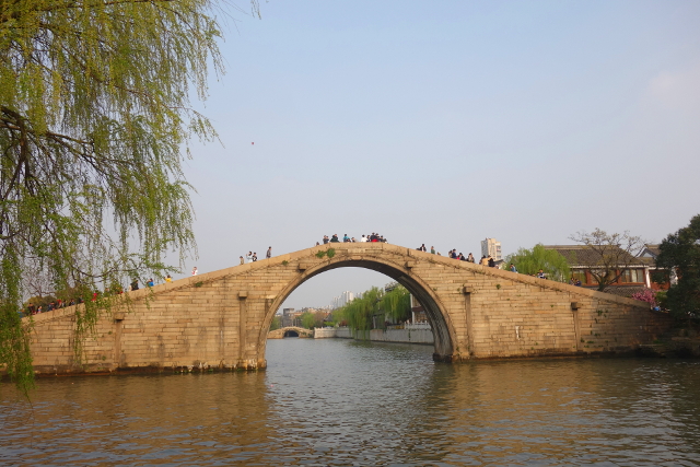 沿著河岸繞到城區的西南方,先遇上的是這個「吳門橋」,為江蘇最大的單孔石橋。